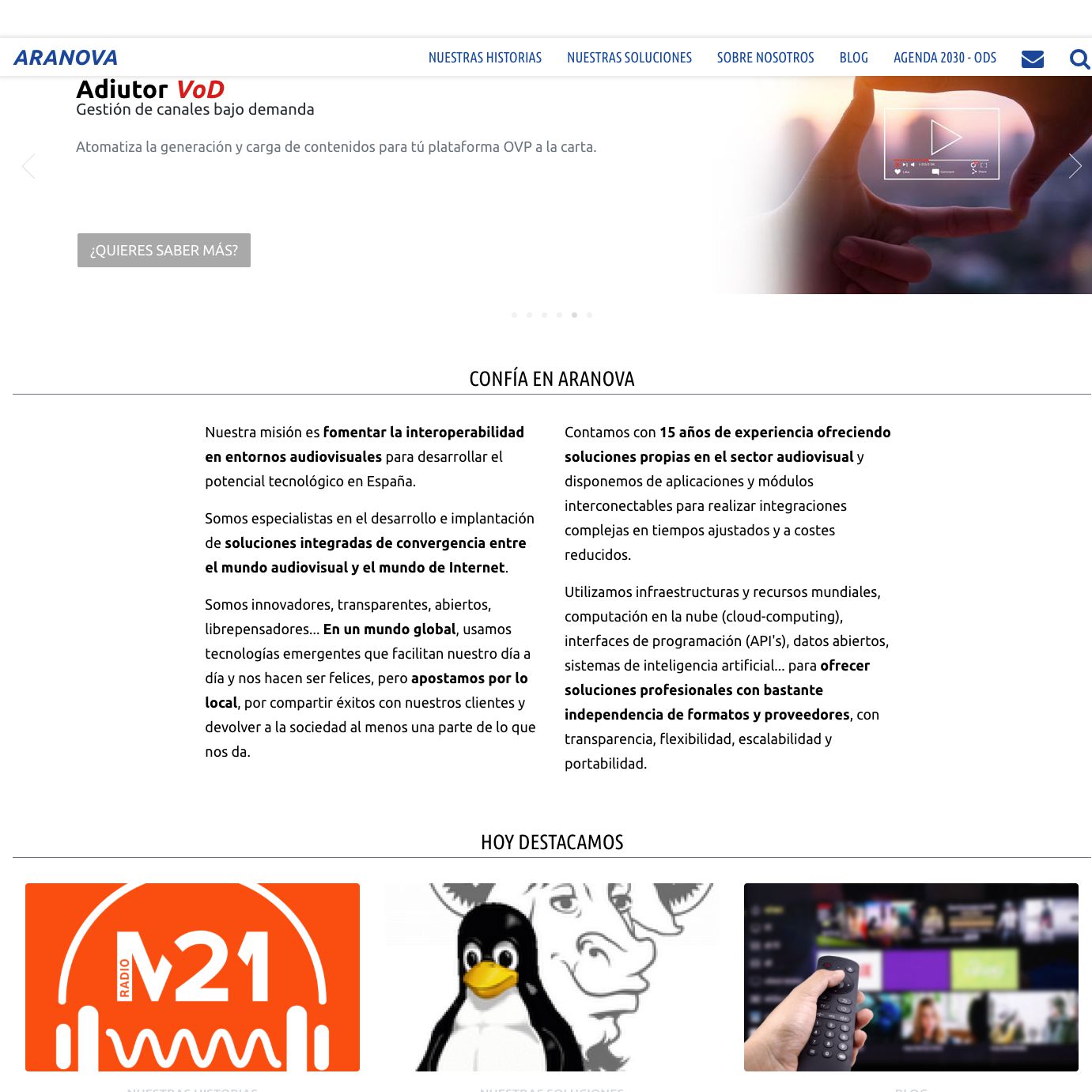 Estrenamos web, versión 4.0 Escrito por Pablo Sánchez el 28 de octubre de 2019 Llevamos ya varios días depurando la versión 4.0 de nuestra web que nos sirve para testear algún experimento SEO. Deja que te cuente la historia y por qué he decidido probar la tecnología AMP de forma «nativa». Hace algún tiempo cambiamos el CMS dejando de usar WordPress pasándonos a Bolt. Fueron cambios de poca importancia ya que no se realizó ninguna variación en el diseño ni en los datos, por ese motivo no realizamos una reseña al respecto. En ese momento aprovechamos también para reunir varias webs, con sus distintos dominios, en el mismo gestor, lo que nos simplifica el día a día: Mantenimiento, actualizaciones, funcionalidades comunes… aunque cada una tenga sus particularidades. El nuevo CMS junto con todas las técnicas de WPO nos daban unos resultados muy buenos en «Page Speed», que por experiencia, resulta un factor de posicionamiento destacado, pero seguíamos sin mejorar el tráfico significativamente. Nueva orientación, Plan de Marketing Digital (PMD) Desde la última re-orientación de la web, en 2012, hasta hoy han pasado muchas cosas y no nos hemos sabido adaptar con la suficiente rapidez. Dentro de nuestra estrategia empresarial, encargamos un Plan de Marketing Digital, para ver dónde estábamos, dónde queríamos llegar, análisis de competencia… y nos marcamos unos objetivos «SMART», en los cuales destacaban mejorar la presencia en redes sociales, tener calendarios de generación de contenidos para los diversos canales, generar ventas digitales… Todo esto, junto con nuestra recien incorporada CDO Belén Gimeno, nos está sirviendo para orientar la página más a un perfil de usuario o usuaria concreto, menos técnico, reordenar contenidos, mejorar textos y lenguaje, aspecto visual, divulgación… en conjunto nuestra comunicación digital y también hemos potenciado mucho la parte técnica que nos facilite la consecución de objetivos. Que Google premie lo que quiere no es un secreto, ellos mismos nos lo dicen Todo proyecto web debe tener marcado un objetivo principal y puede que varios secundarios. Por lo tanto todas las acciones de dicho proyecto web deben orientarse a la consecución de dicho objetivo. Que nuestra web corporativa tenga como objetivo que cada vez más usuarios y usuarias nos conozcan mejor, conozcan nuestros servicios y productos y se decidan a contactarnos eligiéndonos frente a otras opciones no es ningún secreto. Si queríamos que Google, buscador que en España supone casi el 100% del tráfico orgánico o de búsqueda de las webs, teníamos que darle nuestros contenidos como los quería, pero, ¿qué es lo que quiere Google? En su página «¿qúienes somos?» nos lo dice, así que le dimos a Google lo que quería. Quieren: Organizar la información Les dimos nuestros contenidos etiquetados con schema.org Que sea útil Mejorando nuestros textos, facilitando su lectura, tratando que el usuario o usuaria encuentre lo que está buscando Accesible para tod@s AMP nos facilitaba esto por tratarse de un «framework» que funciona en el 100% de las plataformas actuales, es «mobile friendly», confiable… Aunque aún queda trabajo para nuestro equipo y tiempo para analizar los resultados, las conclusiones preliminares parecen indicar que algo estamos haciendo bien: Mejoras en posicionamiento, mejor CTR (el número de clicks que recibimos desde los resultados de búsqueda), mayor duración de sesiones y menos porcentaje de rebote. TODO Añadir un service worker y hacer de la web una aplicación PWA Incluir un servicio de notificaciones push Curiosidades, ¿cómo han sido nuestras webs desde nuestros inicios? Nuestra web en nuestros inicios (2006-2012) Nuestra web antes de la última actualización (2012-2019) Entidades amp ARANOVA Internet software libre web