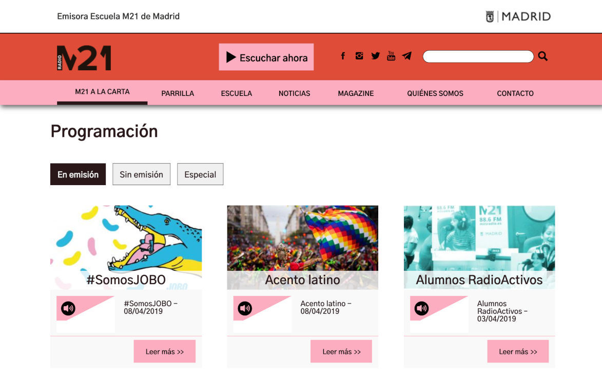 Adiutor Podcast, Software integral para M21 Radio Belén Gimeno Escrito por Belén Gimeno el 1 de diciembre de 2016 La radio pública municipal de Madrid M21 Radio confía en ARANOVA para alimentar de contenidos su canal online: web y aplicaciones móviles. Para ello han apostado por nuestra solución de canales de podcasting automatizada Adiutor Podcast, nuestra herramienta software integral que graba, edita y codifica el audio, sube los archivos a la CDN y los publica en la web. Adiutor Podcast es una aplicación profesional, segura, intuitiva, sencilla y económica que hace más fácil tu proceso de podcasting. Calidad, seguridad y redundancia En esta situación se ha implementado nuestro software adaptándolo a las necesidades y especificidades de M21 Radio. Para ello se ha utilizado un sistema redundante automático tanto a nivel de equipos codificadores con tarjetas de audio broadcast digitales AES/EBU como de líneas de comunicación con soporte remoto. El tratamiento digital de la señal de audio y vídeo permite asegurar la máxima calidad de digitalización y codificación desde el origen. Integrado con vídeo streaming Gracias a un sistema de cámaras instaladas en el estudio y a una realización automática M21 Radio permite que, además de escuchar la radio, también puedas seguirla en vídeo en directo. Sus escuchantes pueden ver cómo se desarrollan los programas y conocer más en profundidad a los artistas, invitados y presentadores. Los mismos equipos codificadores disponen de una entrada de vídeo HDMI en HD y permite emitir vídeo en directo o generar podcast de vídeo para su visionado bajo demanda. Sin duda una solución perfecta para los organismos de radiodifusión que buscan pasar a la nueva era de las transmisiones «Multimedia Radio» (audio + video streaming) Grabación y publicación automatizada de podcast M21 Adiutor Podcast, importa la parrilla de emisión para programar los eventos y no sólo graba, corta y codifica audio, sino que también sube los archivos a la CDN y los publica en el backend que alimenta la web y las aplicaciones móviles a través de una API. Captura web de m21radio.es Desde el inicio del proyecto, no sólo proveemos la herramienta y servicios de soporte y mantenimiento asociados, sino también el almacenamiento y distribución de dichos contenidos, mediante una red de distribución optimizada, que no sólo garantiza la perdurabilidad de los activos digitales, sino también su disponibilidad, con tasas del 99.99%. Mejoras continuas, principio básico Desde sus inicios mantenemos y actualizamos la herramienta y el sistema para adaptarlo a las crecientes necesidades, incluyendo mayor capacidad de almacenamiento en el equipo de grabación, motores de bases de datos más potentes, nuevos flujos de publicación, optimización de costes operativos, etc.